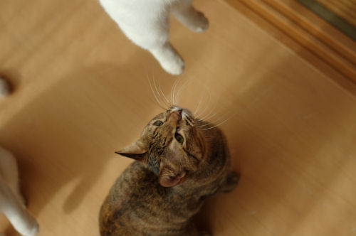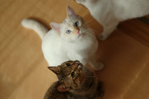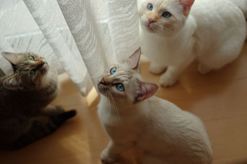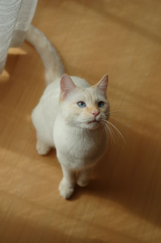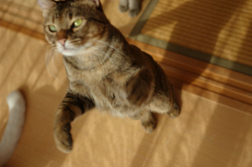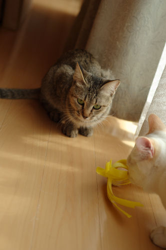 みなさま、こんにちは ![]() 最近は少し暖かい日が続いていますね。 暖かい縁側でこにゃんこたちが見つめるものは.... 「この動きすきすき」 にゃっ ![]() 桃さん、狙ってます。 ひそひそ話 ![]() ぬおーん 「シェリー立ち上がります」 ぷりしらが、宙に浮いている ![]() かしゃかしゃする音と、滑りがいいのでしばらく人気者の 「荷造り紐」でした。 サッカーして遊んでいます。 猫でも好みがありますね。たとえば... ぷりしらは 「お菓子の包み紙」 「 銀紙」 「毛糸のモチーフ」といったかわいい綺麗系なものが好き。 シェリーは 「ねずみのおもちゃ」 「ウール生地」 「ひも」など、動物性のものがすき。食べちゃうし。 クレアは 何とでも根気よく遊ぶけど、私によく飛びついてくる。(服についてる気になるものとか) 桃は 「銀紙を丸めたの」 「紙を丸めたの」といったころころ転がるものがすき。では マリーシャといえば..... マリーシャは外にいるのが好きなので、基本的に自然のもの(ねずみ、昆虫、鳥など)が好きですが室内では、長いもの(ひも)が好きです。 PR |