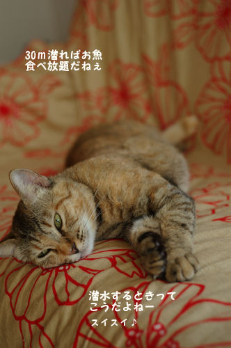 桃ちゃん、センチメンタルな気分にひたっております。 と、桃ちゃんは怒っていました....が 「俺は男猫だ!!!」と脳から指令が ![]() すっかり元気を取り戻した桃ちゃんです ![]() そんな桃にクレアちゃんはとっても優しくて、 こんなポーズまでとってくれました ![]() その時、女帝マリーシャはまだ見ぬ海を想像しイメージトレーニングを... ![]() 「ボートダイブで沖まで出たら、沢山のお魚に会えるよね~ ![]() 」「お魚食べ放題 ![]() ふふふ 」「バディはぷりしら!お願いねっ 」ぷりしらもすっかりその気で、波にさらわれないように 岩にしがみつきバランスをとっています ![]() こんなに流されたら危ない危ない ![]() いいえ、海が時化てる時はダイビングしませんよ ![]() PR |