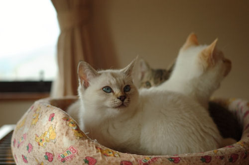 マリーシャがプリシラの面倒をみてくれているので安心しています。 マリーシャといえば術後の経過もよく、傷口もほとんどわからなくなりました。 子猫と遊んでいるので、運動量が多く、ジャンプもよくします。 プリシラは一番最後に生まれた子猫。 性格も温厚なので発情は一番最後かなと思っていました。 大人だったんですね~プリシラ....